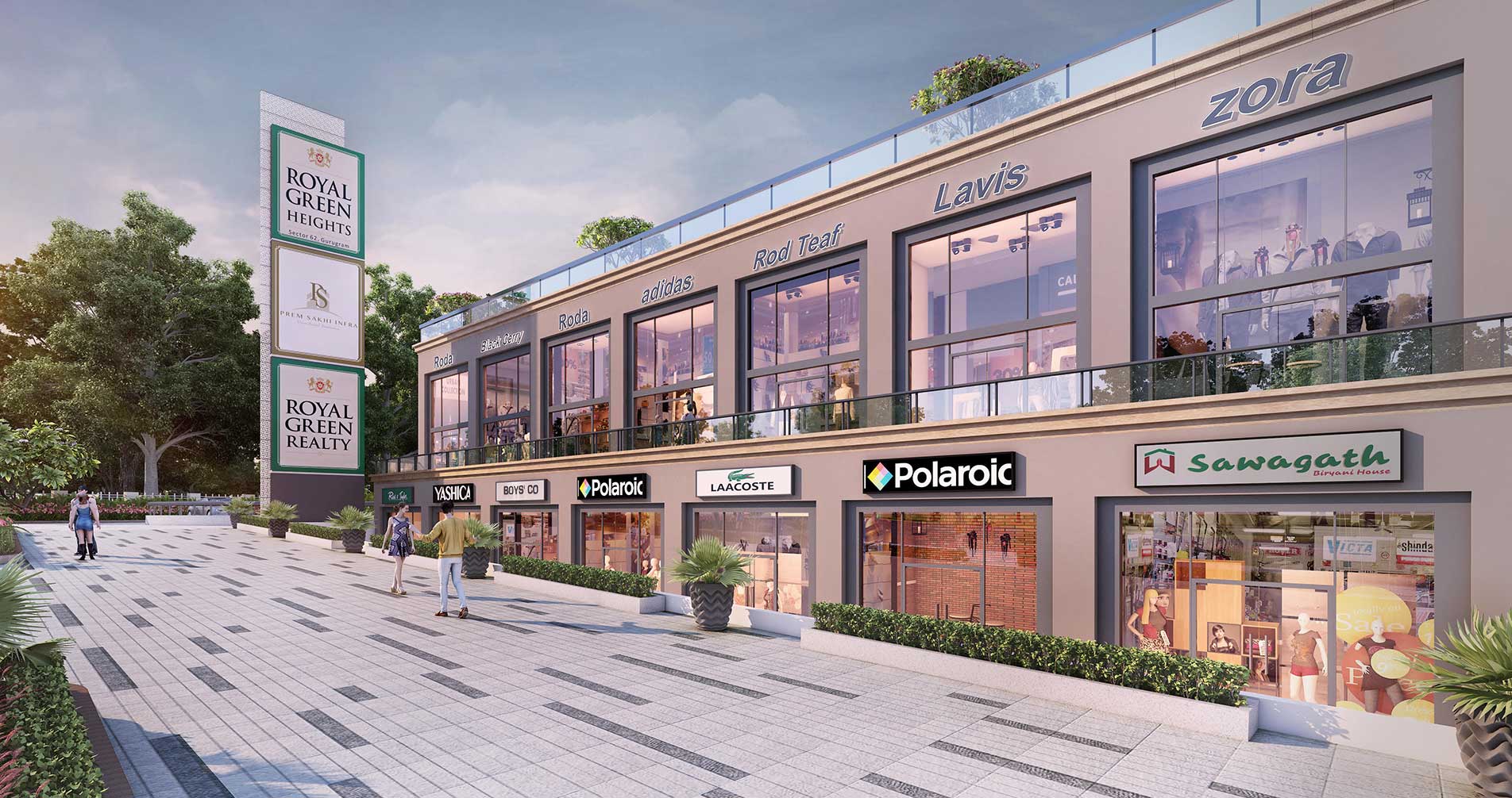 An open, serene layout with premium retail spaces on lower ground, ground, and first floors, ensuring high footfall and customer engagement.